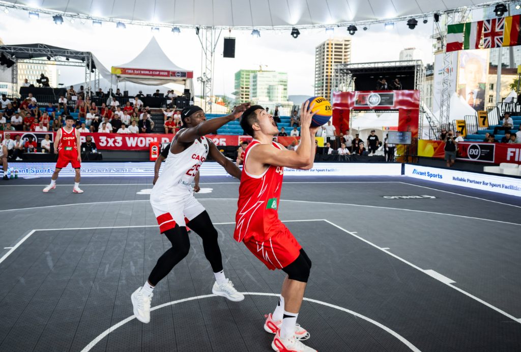 中國隊球員在對陣加拿大隊的比賽中準備投籃。圖片來自國際籃聯(lián)官網(wǎng)