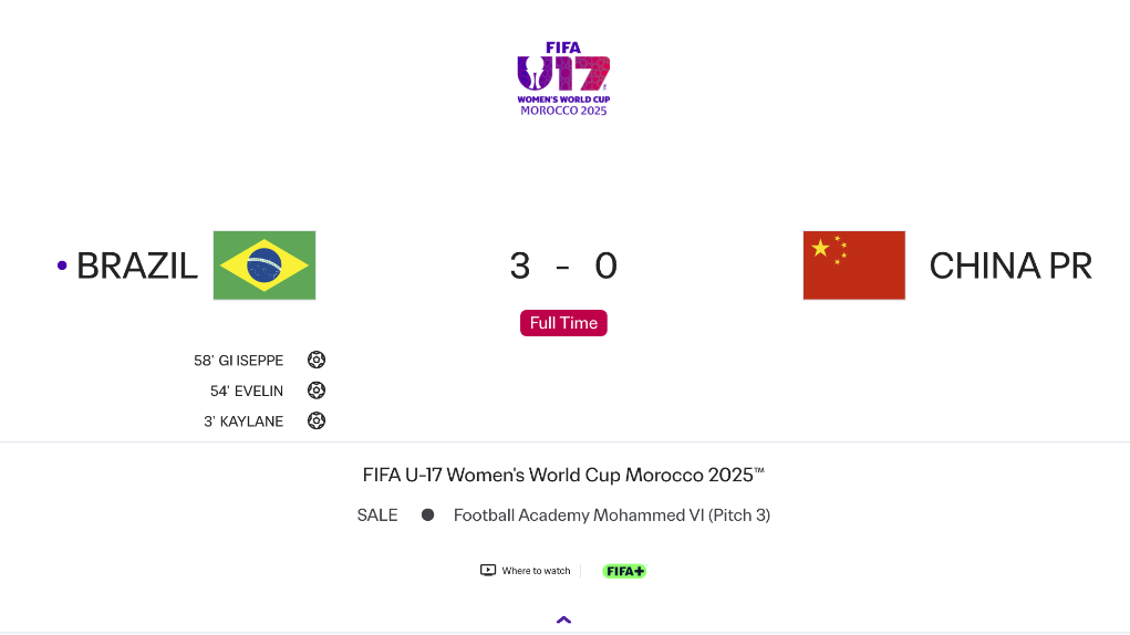 U17女足世界杯|中國隊不敵巴西隊止步16強