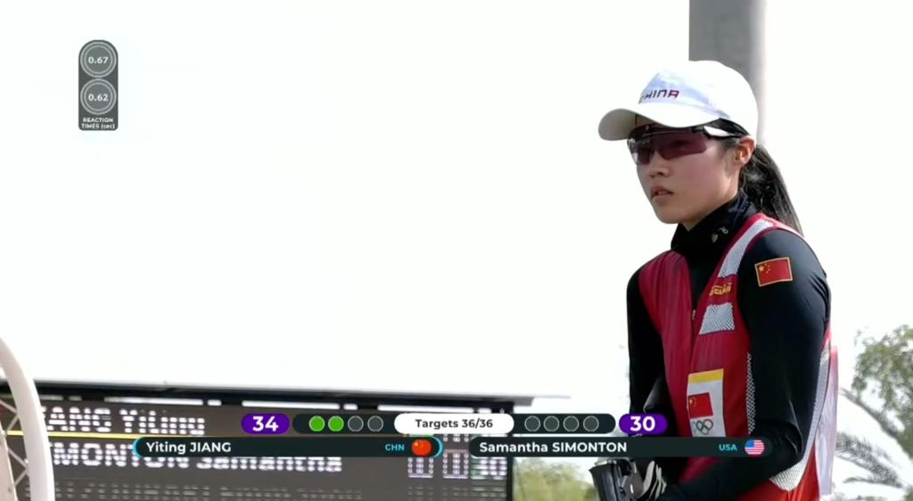 決賽中,21歲的江伊婷延續(xù)火熱手感,前32靶全部命中,以領(lǐng)先美國選手薩曼莎·西蒙頓2中的優(yōu)勢晉級最后的決勝輪。隨后,率先出場的江伊婷4靶全中,以滿中成績提前奪冠。西蒙頓最終以34中獲得亞軍,希臘選手?,斉@たǔ@季軍。另一位晉級決賽的中國選手車雨霏以24中排名第四。