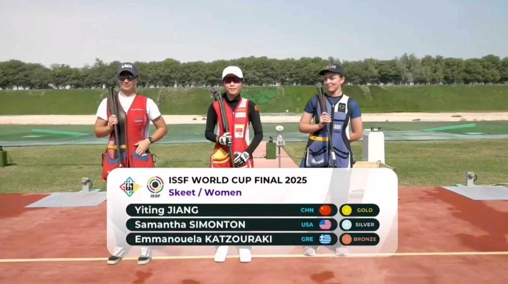 新華社多哈12月8日電 2025年國際射聯(lián)世界杯總決賽8日在多哈收官,中國選手江伊婷在女子雙向飛碟決賽中彈無虛發(fā),以36靶全中的成績奪冠。中國隊(duì)最終以4金2銀3銅位居獎(jiǎng)牌榜榜首。