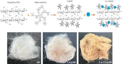 單寧酸與銅離子改性漢麻纖維的制備原理及外觀形貌變化。