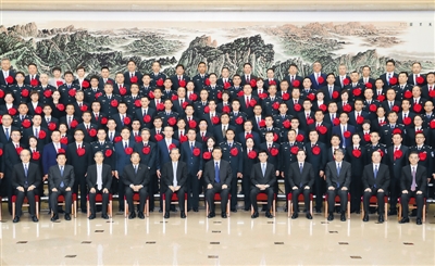 上午10時,習近平等來到京西賓館會議樓前廳,全場響起熱烈掌聲。習近平等走到代表們中間,同大家親切交流并合影留念。