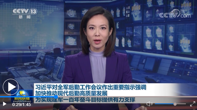 習(xí)近平對(duì)全軍后勤工作會(huì)議作出重要指示強(qiáng)調(diào) 加快推動(dòng)現(xiàn)代后勤高質(zhì)量發(fā)展 為實(shí)現(xiàn)建軍一百年奮斗目標(biāo)提供有力支撐