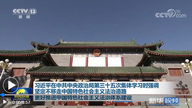 新華社北京12月7日電 中共中央政治局12月6日下午就建設中國特色社會主義法治體系進行第三十五次集體學習。中共中央總書記習近平在主持學習時強調,我國正處在實現(xiàn)中華民族偉大復興的關鍵時期,世界百年未有之大變局加速演進,改革發(fā)展穩(wěn)定任務艱巨繁重,對外開放深入推進,需要更好發(fā)揮法治固根本、穩(wěn)預期、利長遠的作用。要堅定不移走中國特色社會主義法治道路,以解決法治領域突出問題為著力點,更好推進中國特色社會主義法治體系建設,提高全面依法治國能力和水平,為全面建設社會主義現(xiàn)代化國家、實現(xiàn)第二個百年奮斗目標提供有力法治保障。