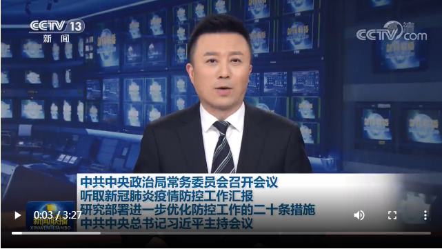 新華社北京11月10日電 中共中央政治局常務委員會11月10日召開會議,聽取新冠肺炎疫情防控工作匯報,研究部署進一步優(yōu)化防控工作的二十條措施。中共中央總書記習近平主持會議并發(fā)表重要講話。