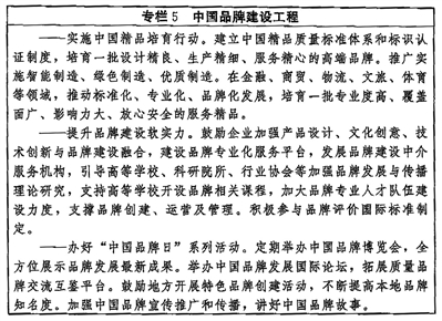 ——品牌建設(shè)取得更大進(jìn)展。品牌培育、發(fā)展、壯大的促進(jìn)機(jī)制和支持制度更加健全,品牌建設(shè)水平顯著提高,企業(yè)爭(zhēng)創(chuàng)品牌、大眾信賴品牌的社會(huì)氛圍更加濃厚,品質(zhì)卓越、特色鮮明的品牌領(lǐng)軍企業(yè)持續(xù)涌現(xiàn),形成一大批質(zhì)量過(guò)硬、優(yōu)勢(shì)明顯的中國(guó)品牌。
