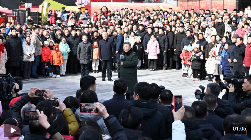 中華民族傳統(tǒng)節(jié)日春節(jié)即將到來(lái)之際,中共中央總書記、國(guó)家主席、中央軍委主席習(xí)近平在北京考察并看望慰問基層干部群眾,向全國(guó)各族人民和香港同胞、澳門同胞、臺(tái)灣同胞、海外僑胞拜年!