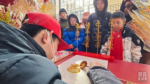 總書記察看街區(qū)風(fēng)貌和各式年貨攤位,同現(xiàn)場群眾親切交流。他愉快地向大家講起年少時(shí)多次到隆福寺的情景,還購買了特色食品和文創(chuàng)產(chǎn)品。