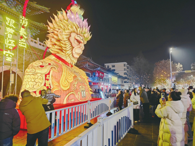①2月2日,長(zhǎng)治市城隍廟前張燈結(jié)彩,眾多市民前來(lái)感受傳統(tǒng)年味。