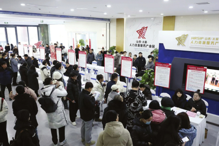2月5日,正月初八,太原市新春首場大型招聘會在山西太原人力資源服務(wù)產(chǎn)業(yè)園拉開帷幕。上午9時許,現(xiàn)場的求職者便已經(jīng)比肩接踵,全力奔赴各自心儀的企業(yè)展位?!皪徫欢?,求職者也多,感覺比過年時逛廟會還熱鬧?!鼻舐氄呲w先生笑著說。