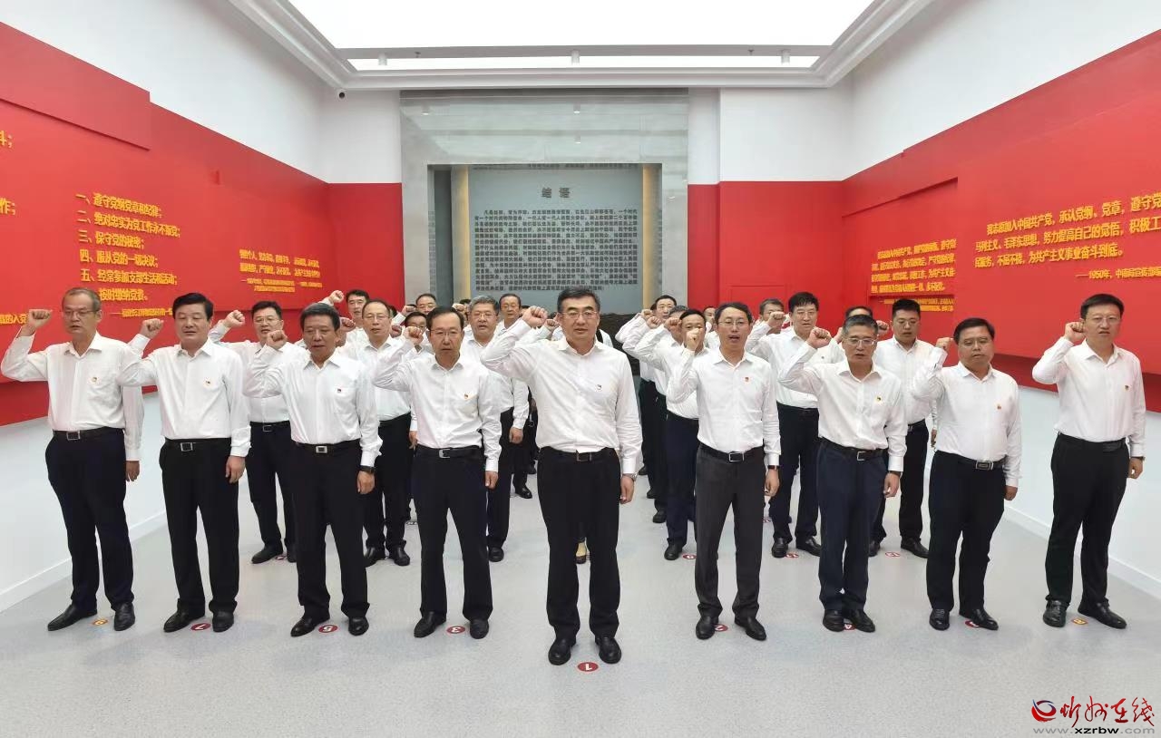 觀展前,同志們還集體觀看了警示教育片。觀展后,在宣誓廳鮮艷的中國共產(chǎn)黨黨旗前,李建國領誓,觀展同志一起重溫入黨誓詞。