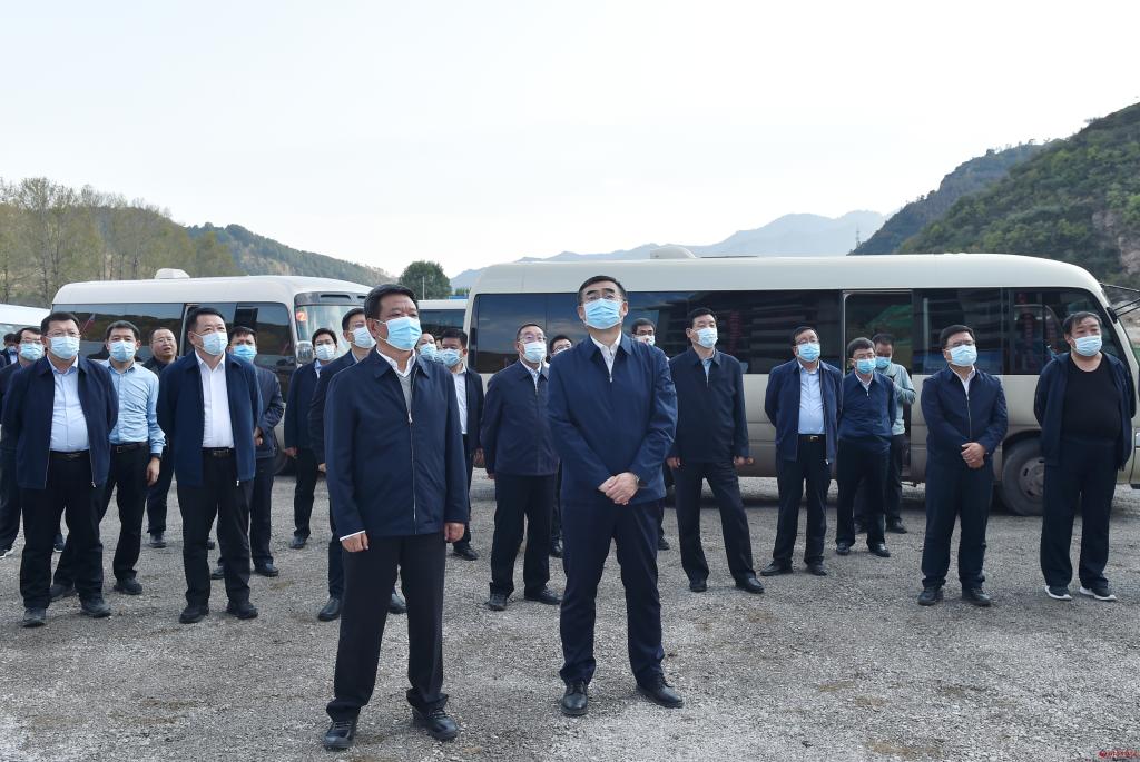 在石咀鎮(zhèn)射虎川村觀摩檢查住宅安置區(qū)(臺麓花園)項目進(jìn)展情況。馮曉磊 攝