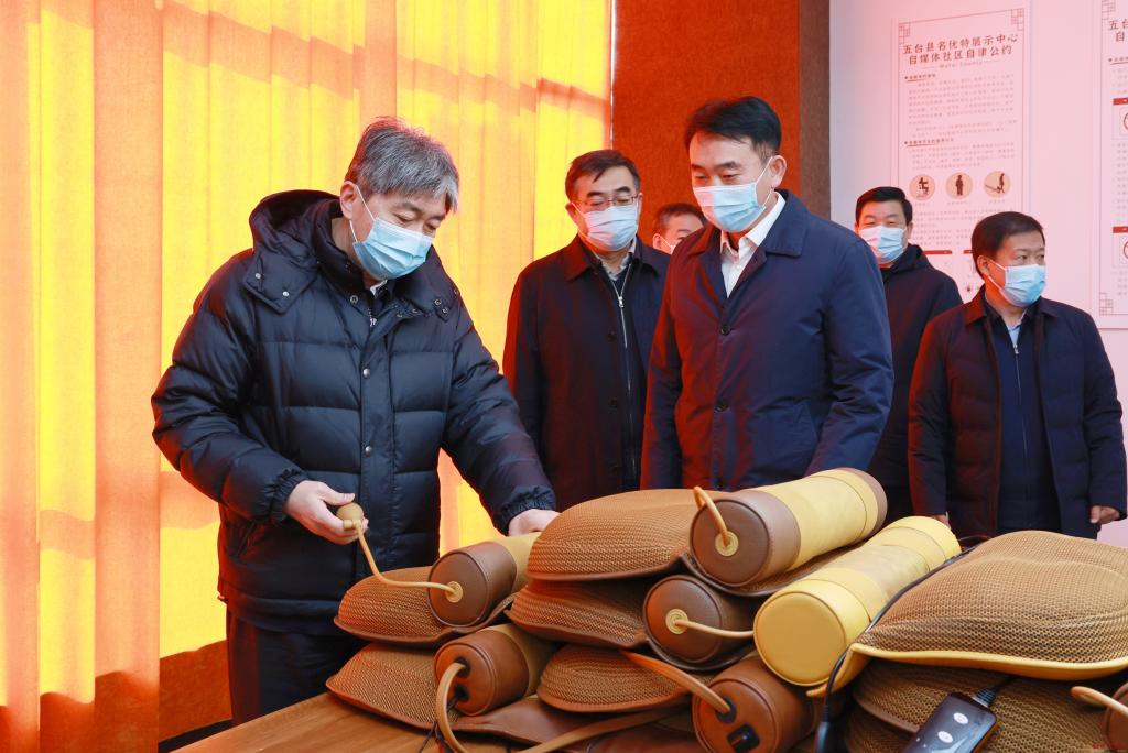 在五臺縣名優(yōu)特展示中心觀摩。張存良 攝 簽約儀式結束后,與會人員現(xiàn)場觀摩了“投產(chǎn)一批”重點項目五臺縣名優(yōu)特展示中心。該中心集五臺縣名優(yōu)特產(chǎn)品展示、網(wǎng)紅打卡地、睡覺村好睡眠體驗館、電商直播基地、辨體質(zhì)本草雜糧調(diào)理中心、農(nóng)民自產(chǎn)自銷交易平臺、第一書記之家七大功能于一處,在視覺效果上突出觀賞功能,為網(wǎng)紅打卡宣傳提供平臺和素材,同時兼具超市功能,顧客在參觀體驗的同時即可購買產(chǎn)品,既能帶動農(nóng)民創(chuàng)收,又能為城市居民帶來質(zhì)優(yōu)價廉的農(nóng)產(chǎn)消費品,為農(nóng)產(chǎn)品銷售提供一處高效交易平臺。