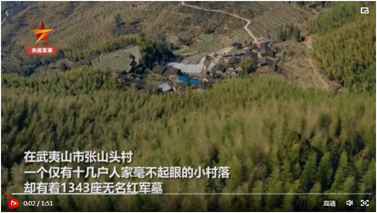 福建張山頭村竹林中,有1343座無名紅軍墓,每座墓僅一根紅飄帶、一個編號做標(biāo)記。革命戰(zhàn)爭年代,這里曾是閩北蘇區(qū)紅色首府所在地的中心地帶,不少傷病員在村里的紅軍中醫(yī)院療養(yǎng)。敵人“圍剿”,藥品不足,斷米斷菜,很多將士犧牲了,村民就把他們葬在醫(yī)院后方,3塊青磚做墓門。為保護家人,這些紅軍沒有留下名字……(胡渝 任超 張馨尹)