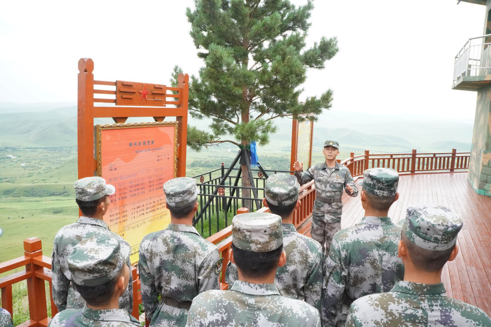 2021年8月9日,陸軍某旅三角山邊防連官兵在“相思樹”下學習李相恩的英雄事跡。新華社發(fā)(孫路 攝)