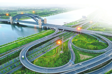 晉陽橋,形如彩帶、態(tài)似彩虹,完美地詮釋了傳統(tǒng)與現(xiàn)代交融的設(shè)計理念,展現(xiàn)出莊重的對稱式美。夕陽西下,站在晉陽橋段東岸“汾河晚渡”觀景平臺遠(yuǎn)眺西山,天際線、山脊線、水岸線層次分明,河面波光粼粼,畫舫古樸典雅,晉陽橋雄偉絢麗,呈現(xiàn)出一幅河、舫、橋、山渾然一體的秀美畫卷。
