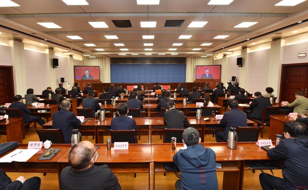 市領(lǐng)導(dǎo)集中收聽(tīng)收看大會(huì)實(shí)況直播。馮曉磊 攝