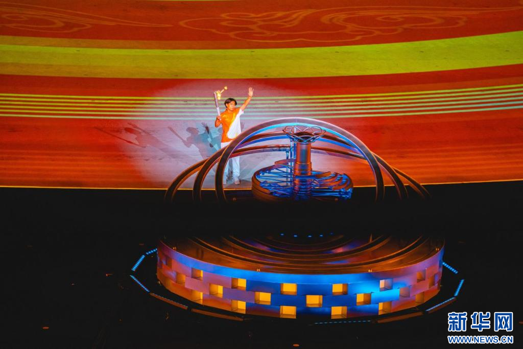 ??蘇翊鳴點(diǎn)燃主火炬。新華網(wǎng) 發(fā)(馬夢迪 攝)