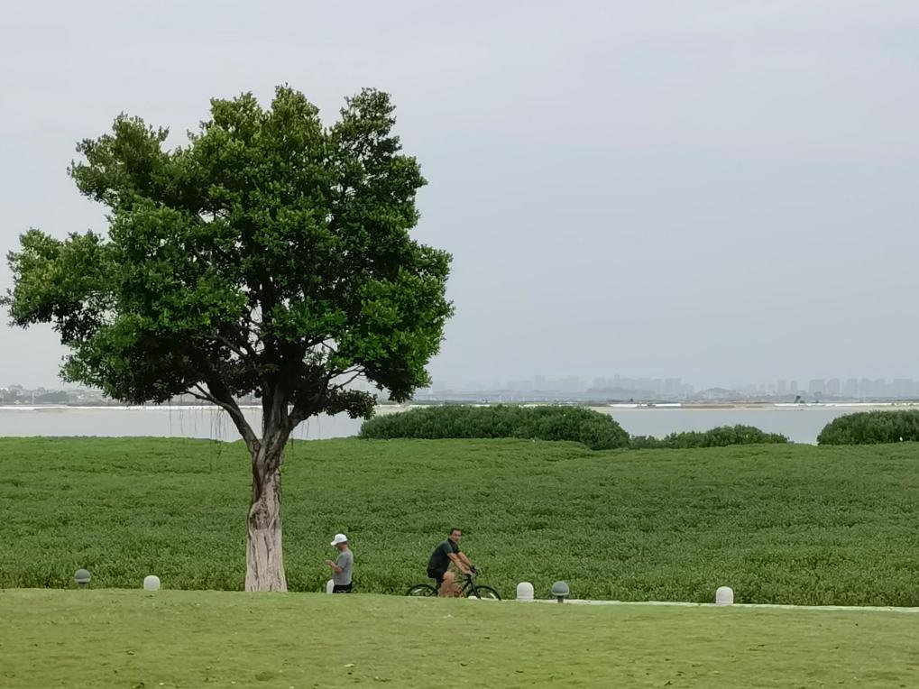 市民騎行經(jīng)過(guò)環(huán)東濱海旅游浪漫線(xiàn)紅樹(shù)林。新華社記者 秦宏 攝