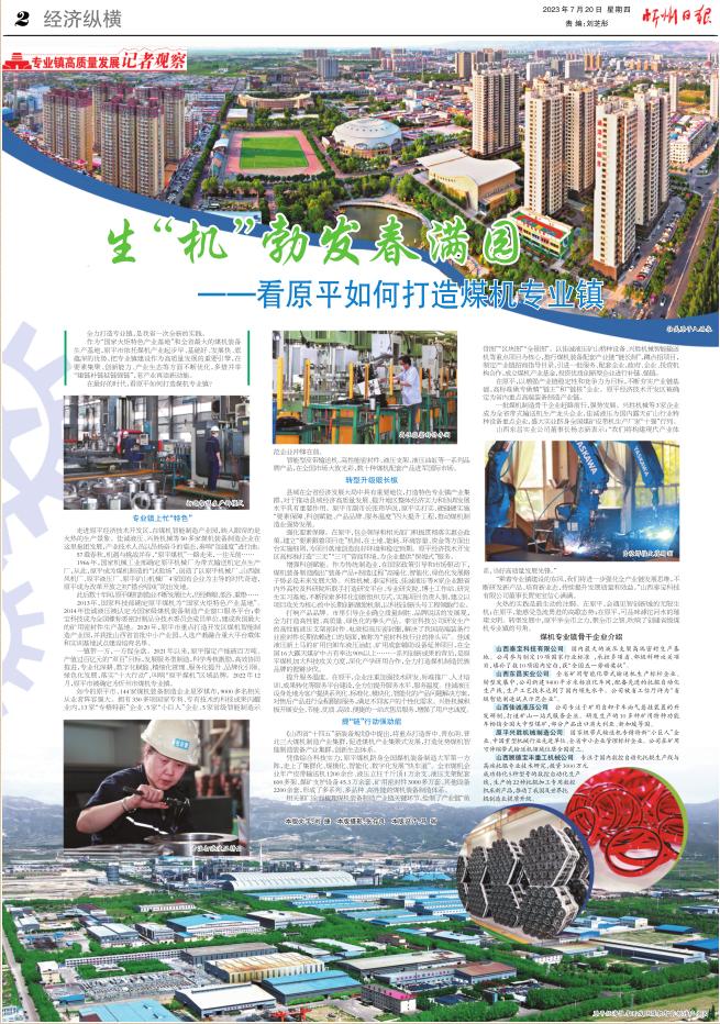 一鎮(zhèn)帶一方,一方促全盤。原平市把煤機專業(yè)鎮(zhèn)建設作為發(fā)展制造業(yè)、壯大縣域經(jīng)濟、推進產(chǎn)城融合的重要載體,立足產(chǎn)業(yè)基礎、發(fā)揮比較優(yōu)勢,以骨干企業(yè)為引領,在關鍵技術上創(chuàng)新突破,持續(xù)提升服務水平,全力做強特色產(chǎn)業(yè)、做精拳頭產(chǎn)品,打造更多有生命力、有影響力、有競爭力的山西特色專業(yè)鎮(zhèn)品牌。