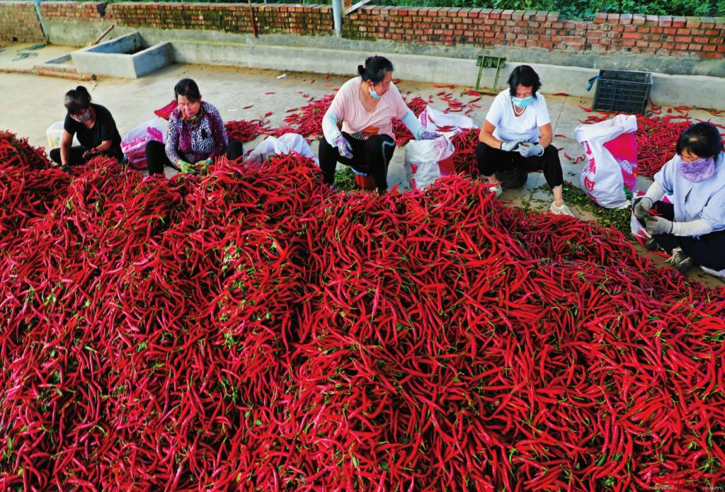 “辣椒是個(gè)寶,群眾增收離不了?!逼娲彐?zhèn)蔚野村的辣椒種植大戶陳戌平說,辣椒是勞動密集型產(chǎn)業(yè),種植效益較高,正常年景畝收入在5000元左右,除了家里的日常開支,年平均收入有五六萬元。