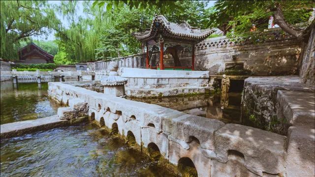 這首詩(shī)描寫(xiě)的景致主要是“晉祠之水”。從詩(shī)中,我們可以發(fā)現(xiàn)晉祠之水有兩個(gè)特點(diǎn)。一是綠,因?yàn)樗袖仢M(mǎn)莎草,所以“晉祠之水如碧玉”。這景象如今前往晉祠還能看得見(jiàn)。二是水量充沛,能讓人“浮舟弄水”,而船上除了李白、元演,還有許多樂(lè)工歌伎,免不了還會(huì)有其他賓客,合理猜測(cè),船定然不是一葉扁舟,起碼是游船不可。李白寫(xiě)詩(shī)好夸張,形容晉祠之水為“百尺清潭”。然而他也說(shuō)過(guò)“桃花潭水深千尺”,廬山瀑布“飛流直下三千尺”,說(shuō)晉祠之水僅僅“百尺”,在李白詩(shī)中尚算保守。