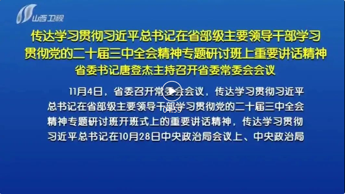 山西日報報道 11月4日,省委召開常委會會議,傳達(dá)學(xué)習(xí)貫徹習(xí)近平總書記在省部級主要領(lǐng)導(dǎo)干部學(xué)習(xí)貫徹黨的二十屆三中全會精神專題研討班開班式上的重要講話精神,傳達(dá)學(xué)習(xí)貫徹習(xí)近平總書記在10月28日中央政治局會議上、中央政治局第十七次集體學(xué)習(xí)時的重要講話精神和對民政工作的重要指示精神,傳達(dá)第十五次全國民政會議精神,研究我省貫徹落實意見。省委書記唐登杰主持會議并講話。
