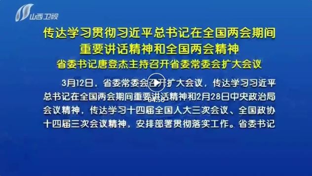 山西日報報道3月12日,省委常委會召開擴大會議,傳達學(xué)習(xí)習(xí)近平總書記在全國兩會期間重要講話精神和2月28日中央政治局會議精神,傳達學(xué)習(xí)十四屆全國人大三次會議、全國政協(xié)十四屆三次會議精神,安排部署貫徹落實工作。省委書記唐登杰主持會議。