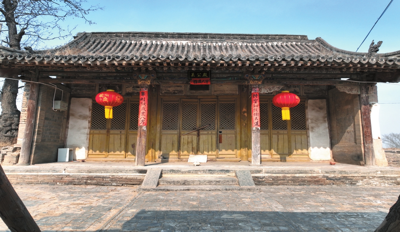 該公祠為二進(jìn)院落布局,中軸線上建有戲臺(tái)和過(guò)殿,兩側(cè)為東耳殿和東配殿。東配殿為明代遺構(gòu),其余皆為清代建筑。過(guò)殿石砌臺(tái)基,基寬8.9米、深8.7米、高0.98米,面寬三間,進(jìn)深五椽,單檐硬山頂,六檁前廊式構(gòu)架,裝修已改。東配殿磚砌臺(tái)基,基寬8.6米、深6.7米、高0.5米,面寬三間,進(jìn)深四椽,單檐懸山頂,五檁無(wú)廊式構(gòu)架,現(xiàn)存裝修為后世改動(dòng)。祠內(nèi)現(xiàn)存金代重修碑1通、清代重修碑2通。