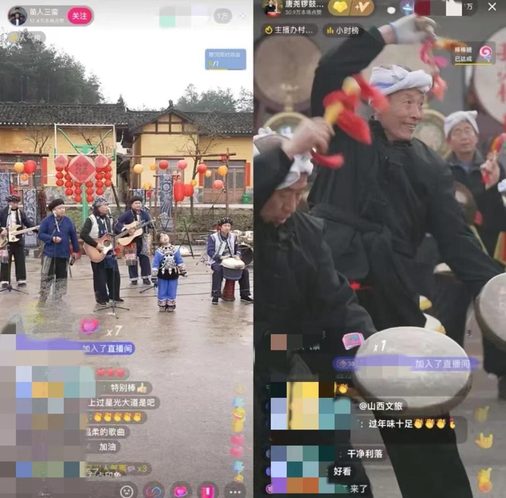 △山西臨汾和湖南鳳凰兩地“村晚”抖音直播連線。 湖南省鳳凰縣臘爾山鎮(zhèn)苗寨中,4個“90后”苗族小伙組成樂隊自辦“村晚”,規(guī)模不大,唱火家鄉(xiāng);山西臨汾的村民們用簸箕、黃豆當樂器,配合嗩吶和非遺晉南威風鑼鼓,直播連線上千公里外的苗鄉(xiāng),南北大聯(lián)歡釋放獨特的精彩,吸引在線觀眾近800萬人…… 人潮如織的車站機場、歡樂祥和的萬家燈火、采購年貨的喜樂表情……中國人對年文化的傳承從未改變,對家國的情感越來越深厚。