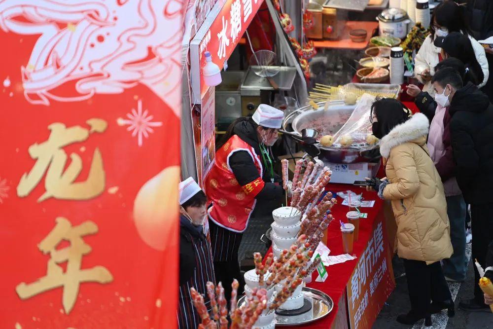 △2月5日,人們在甘肅蘭州的黃河市集上選購特色美食。 備年貨,是中國人過年的“重頭戲”。年貨備足了,年味自然就濃了。 從內(nèi)蒙古錫林浩特愛民社區(qū)超市到云南昆明新春購物博覽會,再到山西平遙古城的特產(chǎn)店鋪……這些年,習近平總書記經(jīng)常在春節(jié)前到市場、超市、店鋪轉(zhuǎn)一轉(zhuǎn),察看市場供應(yīng)、年貨供銷、物價運行等情況。 今年春節(jié)期間,上海許多古鎮(zhèn)張燈結(jié)彩迎接春節(jié),“老字號”食品店排起了長龍;在貴州銅仁本莊鎮(zhèn)的“米花街”,寓意幸福和美、喜慶團圓的炸米花令空氣中彌漫著清甜的香氣…… 人們在甘甜軟糯、鮮香麻辣、包容萬象的年貨中品味著中國年味。 年味里有傳統(tǒng)文化的魅力 山西平遙,讀春聯(lián)、賞花燈、逛非遺市集、看社火巡演……“中國年”活動拉開大幕,四海賓朋盡情感受古城魅力。