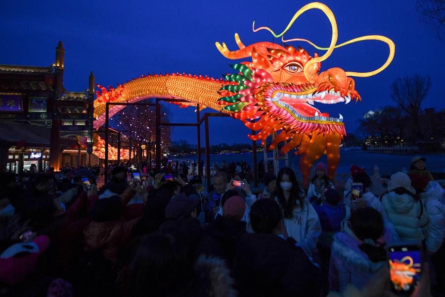 中國各地以龍為主題的展覽、游園會以及文創(chuàng)產品等紛紛“上新”,為中國文旅市場復蘇增添強勁動力。以北京為例,2月10日至2月13日,全市重點監(jiān)測的旅游景區(qū)(地區(qū))為174家,累計接待游客960.1萬人次,同比增長80.4%。
