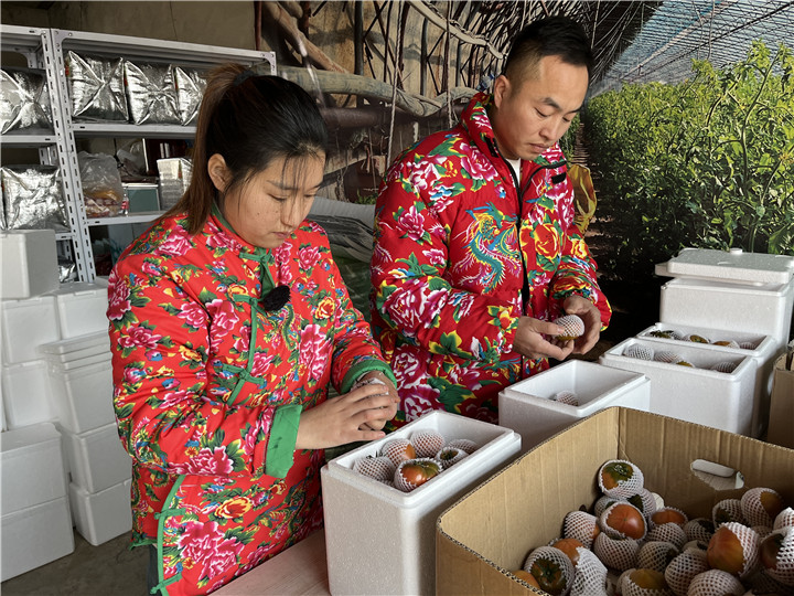 去年,應(yīng)季時(shí)每天線上銷售堿地柿子100單左右,全年銷售河蟹5000余公斤,幫助周邊村民家的堿地柿子大棚平均增收約2萬(wàn)元。