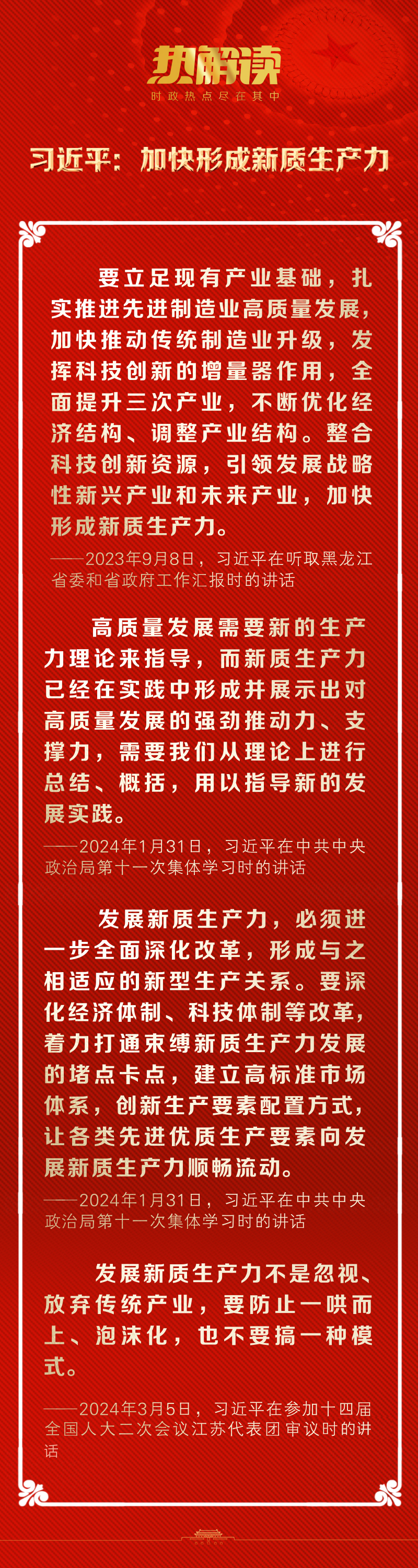 從2023年底召開的中央經(jīng)濟(jì)工作會議要求發(fā)展新質(zhì)生產(chǎn)力,到今年中央政治局首次集體學(xué)習(xí)時聚焦“新質(zhì)生產(chǎn)力”,再到今年政府工作報告將加快發(fā)展新質(zhì)生產(chǎn)力列為2024年十大工作任務(wù)之首,一系列重要安排部署釋放出鮮明信號,即發(fā)展新質(zhì)生產(chǎn)力重要且迫切。