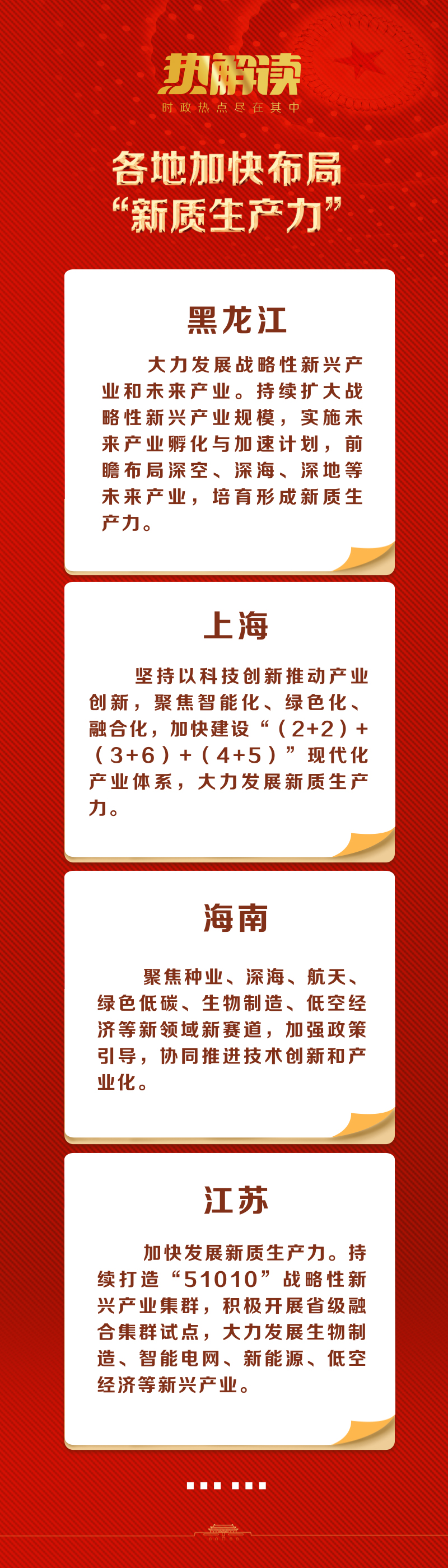 加快發(fā)展新質(zhì)生產(chǎn)力已成為2024年推進(jìn)經(jīng)濟(jì)社會高質(zhì)量發(fā)展的主旋律。各地?fù)屪C(jī)遇,紛紛布局。在各省區(qū)市2024年政府工作報告中,多地將加快培育新質(zhì)生產(chǎn)力列為重點工作任務(wù)。