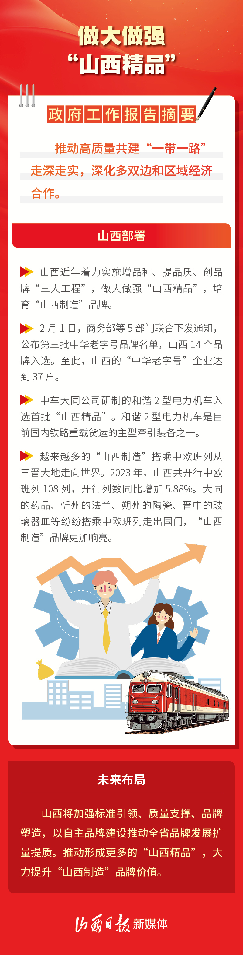 今年的政府工作報(bào)告,對(duì)制造業(yè)發(fā)展進(jìn)一步提出明確要求,必將鼓舞山西在加快建設(shè)中部地區(qū)先進(jìn)制造業(yè)基地的大路上闊步前進(jìn)。 以科技創(chuàng)新為引領(lǐng),以制造業(yè)振興升級(jí)為主攻方向,新的一年里,山西上下將繼續(xù)大力推進(jìn)新型工業(yè)化,做強(qiáng)做大“山西精品”,不斷拭亮“山西制造”品牌。