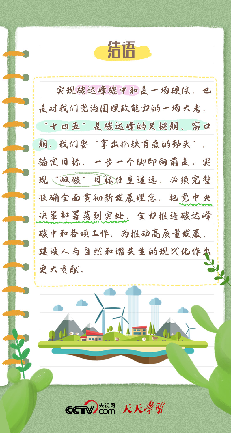 天天學(xué)習(xí)今年全國兩會,習(xí)近平總書記在政協(xié)聯(lián)組會上,對“雙碳”工作作出最新部署??倳洀?qiáng)調(diào):“全面準(zhǔn)確落實(shí)精準(zhǔn)治污、科學(xué)治污、依法治污方針,推動(dòng)經(jīng)濟(jì)社會發(fā)展綠色化、低碳化,加強(qiáng)資源節(jié)約集約循環(huán)利用,拓展生態(tài)產(chǎn)品價(jià)值實(shí)現(xiàn)路徑,積極穩(wěn)妥推進(jìn)碳達(dá)峰碳中和,為高質(zhì)量發(fā)展注入新動(dòng)能、塑造新優(yōu)勢?!?/p>
