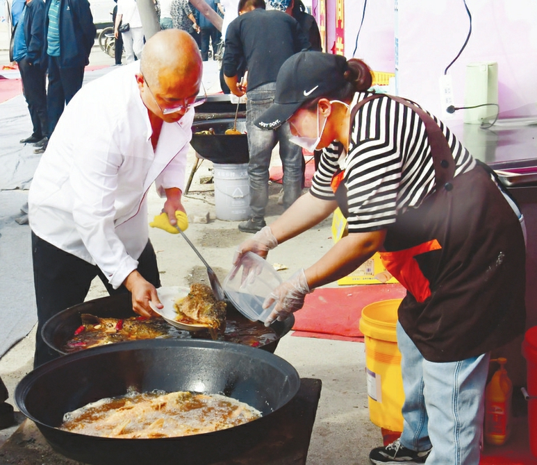 首屆熬魚(yú)美食節(jié)匯聚了代縣碗托、老咸菜、豆腐干等當(dāng)?shù)亍凹亦l(xiāng)味”,12家熬魚(yú)商戶(hù)更是集體亮相,現(xiàn)場(chǎng)烹飪銷(xiāo)售。賈狗狗有著近40年的熬魚(yú)經(jīng)驗(yàn),今年備貨比往年更足、更早。