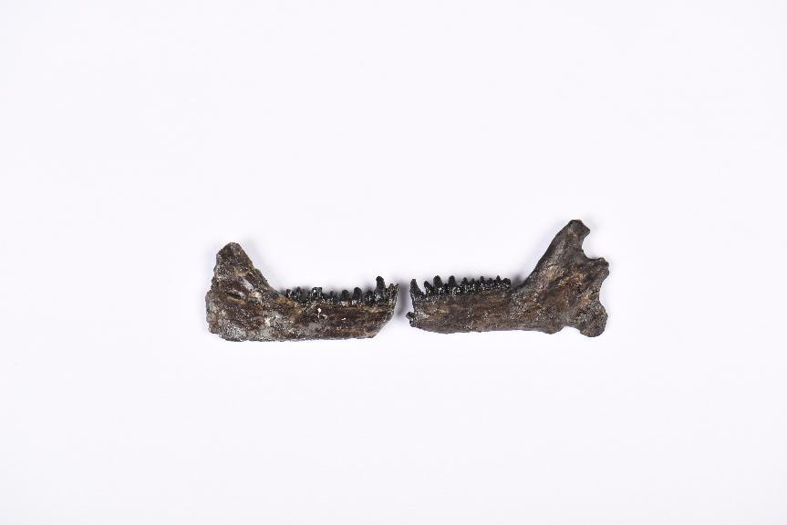 世紀(jì)曙猿下頜骨化石 時代:距今4500多萬年 1995年山西省運(yùn)城市垣曲縣王茅鎮(zhèn)寨里村出土。 “世紀(jì)曙猿”化石的發(fā)現(xiàn),打破了當(dāng)時國際學(xué)術(shù)界關(guān)于“人類起源于非洲”的傳統(tǒng)論斷,說明晉南地區(qū)是包括人類在內(nèi)的類人猿等高等靈長類動物的肇源地之一。