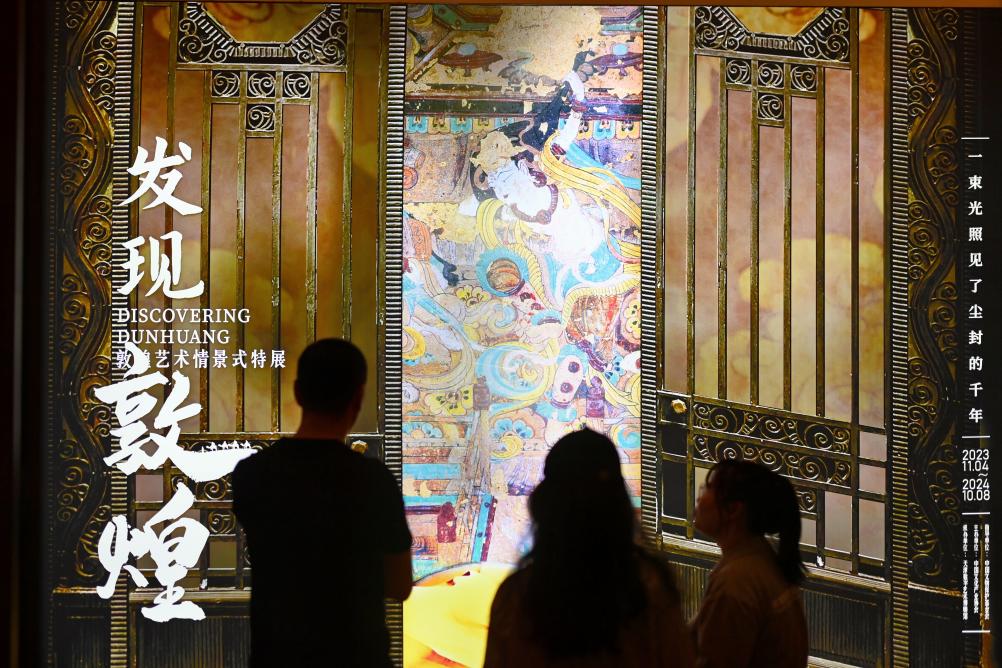 觀眾在天津數(shù)字藝術博物館參觀“發(fā)現(xiàn)敦煌——敦煌藝術情景式特展”。新華社記者 趙子碩 攝