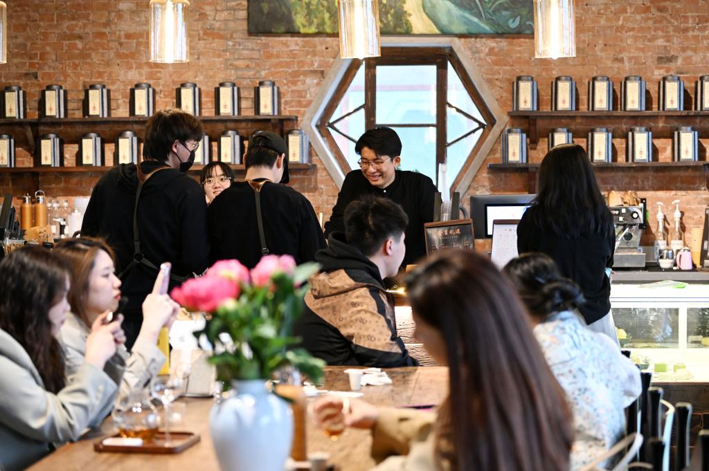 在天津市和平區(qū)五大道樘院內(nèi),一家新開業(yè)的茶飲店內(nèi)顧客絡繹不絕。新華社記者 李然 攝