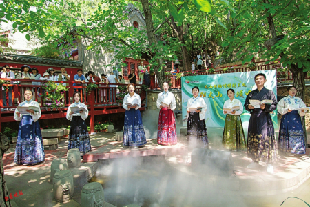在太山景區(qū)售票廳里,背誦古詩詞免門票的活動(dòng)吸引了不少18周歲以下的學(xué)生參加,大家通過轉(zhuǎn)盤選定需要背誦的古詩詞,完成背誦即可獲得門票一張?!昂屯瑢W(xué)們正好一塊兒來了,通過參加這個(gè)活動(dòng),弘揚(yáng)我們的傳統(tǒng)文化,是非常有意義的?!苯衲晔钇?,太山景區(qū)面向廣大學(xué)生推出皮影戲、手工DIY印章、拓印等非遺體驗(yàn)活動(dòng)。同時(shí),景區(qū)還準(zhǔn)備了2000多套漢服,免費(fèi)為游客提供。