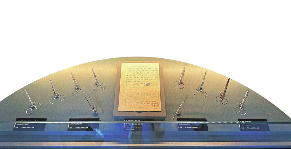 大同紅色記憶館內(nèi)有一個(gè)專屬展廳,珍藏著白求恩同志曾經(jīng)用過(guò)的12件醫(yī)療器械。這些醫(yī)療器械是白求恩從美國(guó)帶來(lái),并曾在大同靈丘抗戰(zhàn)前線使用過(guò)的。館內(nèi)負(fù)責(zé)人任冬介紹,這些醫(yī)療器械是由大同市渾源縣王莊堡村退伍老兵宮福祥老人于1984年捐贈(zèng)給雁北文物工作站的。如今,它們已經(jīng)成為該館的“鎮(zhèn)館之寶”,見證了白求恩大夫在抗戰(zhàn)前線的無(wú)私奉獻(xiàn)和國(guó)際主義精神。