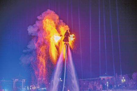 ①運(yùn)城鹽湖景區(qū)火壺表演。薛俊攝