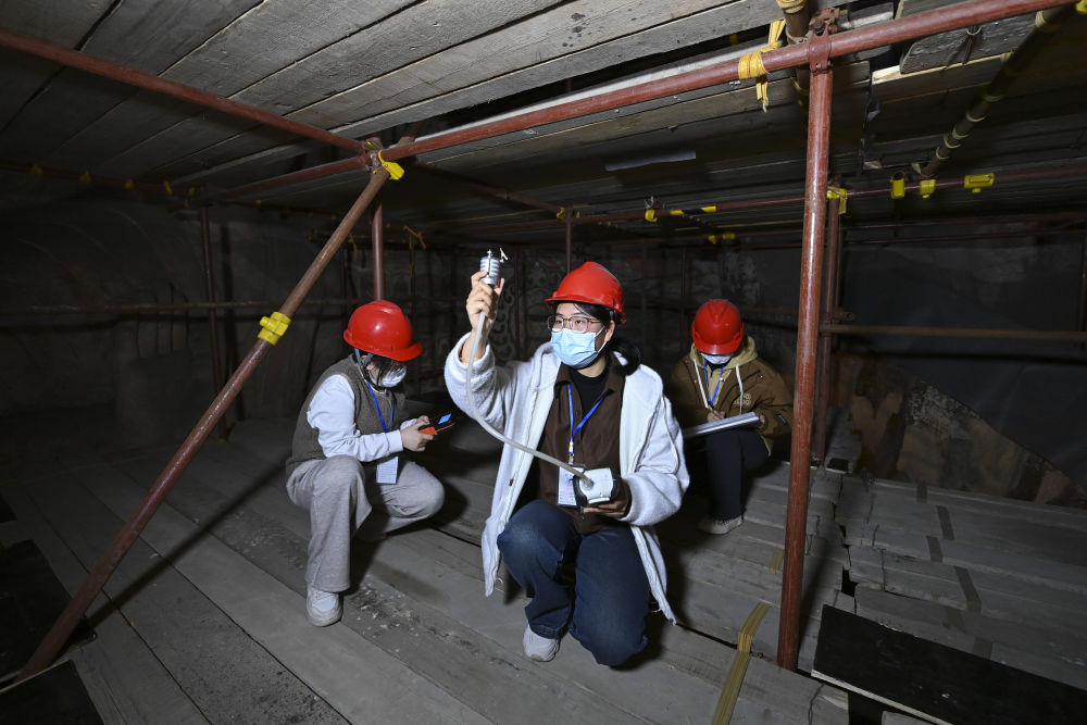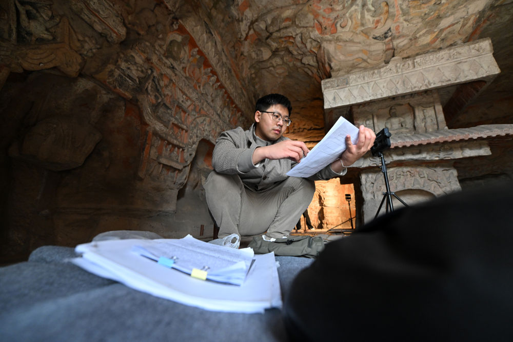 4月16日,在云岡石窟,工作人員在進行考古調(diào)查。一支“文物醫(yī)生”團隊