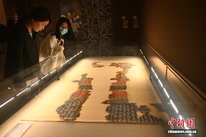 4月8日,在位于甘肅省蘭州市的甘肅簡(jiǎn)牘博物館,觀眾參觀“錦繡華裳”巴州博物館藏古代服飾精品展。中新社記者 李亞龍 攝