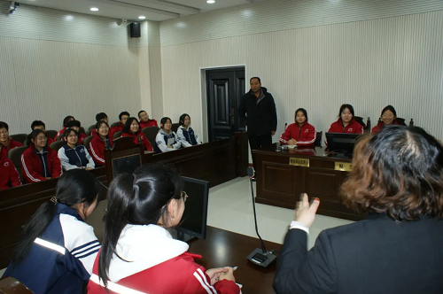 在干警的指導(dǎo)下,同學(xué)們模擬庭審現(xiàn)場(chǎng),從審判長、審判員到公訴人、辯護(hù)人、被告人等,大家紛紛扮演起了不同的角色。