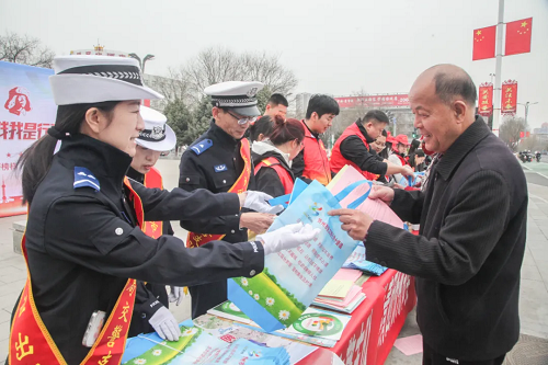 3月14日上午,忻州市城區(qū)街心公園西廣場上人頭攢動(dòng)。市公安局交警支隊(duì)在這里聯(lián)合市文明辦、市婦聯(lián)、團(tuán)市委、市人社局等多部門開展“學(xué)雷鋒?文明實(shí)踐我是行動(dòng)者”主題活動(dòng)。此次活動(dòng)以“新時(shí)代文明實(shí)踐月”為契機(jī),旨在通過實(shí)際行動(dòng)傳承雷鋒精神,為廣大市民送去關(guān)愛與溫暖。