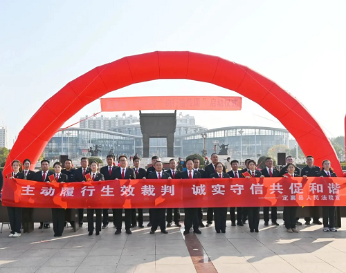為切實(shí)將勝訴當(dāng)事人的“紙上權(quán)益”轉(zhuǎn)化為“真金白銀”,有效敦促被執(zhí)行人主動(dòng)履行法律義務(wù),積極營(yíng)造“守信光榮、失信可恥”的良好社會(huì)氛圍,10月29日,定襄法院在金鼎廣場(chǎng)舉行“執(zhí)行宣傳周”啟動(dòng)儀式。定襄法院黨組書(shū)記、院長(zhǎng)張曉峰出席啟動(dòng)儀式,執(zhí)行局全體干警及相關(guān)部門(mén)負(fù)責(zé)同志參加活動(dòng)。