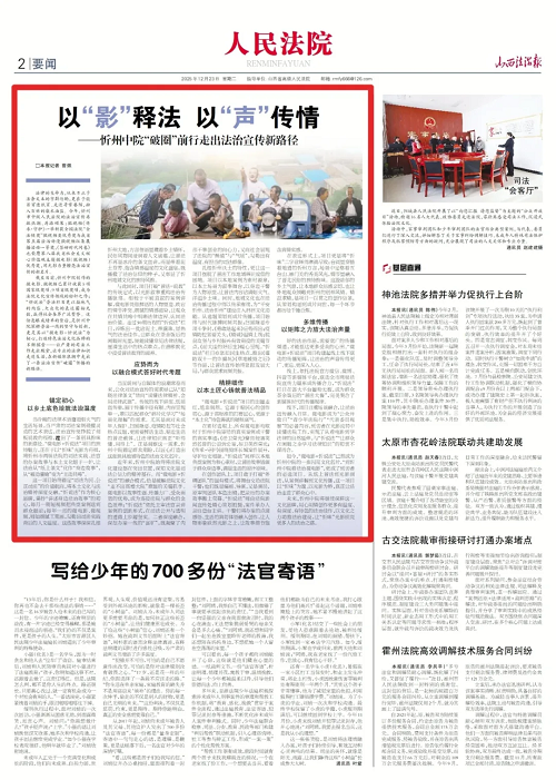 線下,項目注重場景融合,讓法治宣傳融入日常。微電影成為“公眾開放日”“青少年法院行”“代表委員視察”的必備內容,到訪者在光影流轉中讀懂法院工作,實現了從看電影到學法律的自然延伸,與“忻說法”“讓群眾在閑暇之余學習法律知識”的初衷不謀而合。